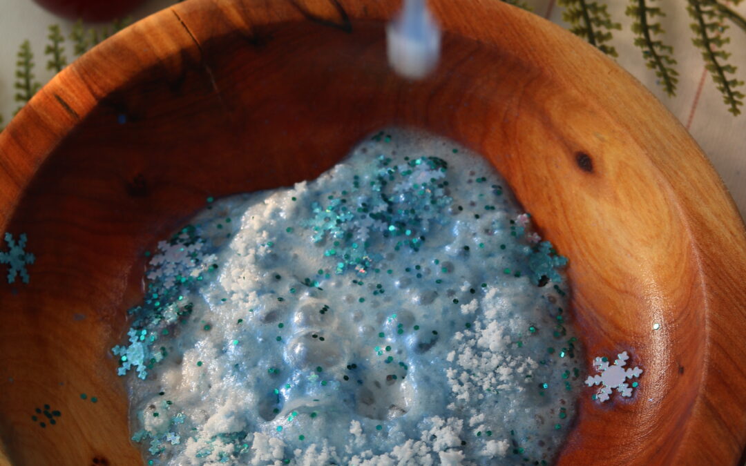 Verse un peu de potion givrée dans un bol ou un bac. Invite ton enfant à ajouter doucement l’eau magique et à observer. La potion s’anime : bulles, mousse et reflets scintillants apparaissent progressivement. Chaque ajout d’eau modifie la texture et la réaction, offrant une nouvelle expérience à chaque fois.